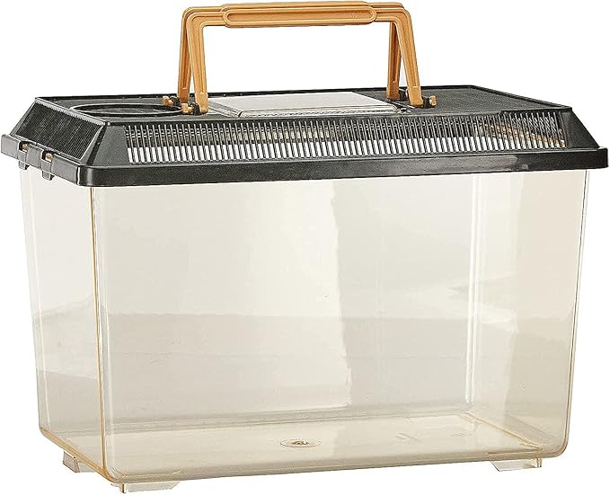 - Medium plastic terrarium measures12 inches by 7.5 inches by 8 inches
