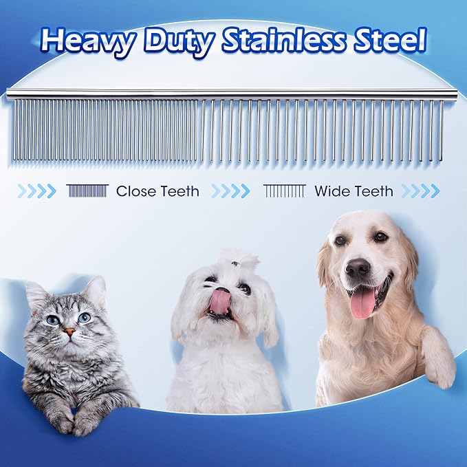 - 【5 in 1 Dog Grooming Scissors Set】The dog grooming scissors set comes with 1 straight scissors, 1 thinning scissor, 1 curved scissor, 1 grooming comb and 1 storage case