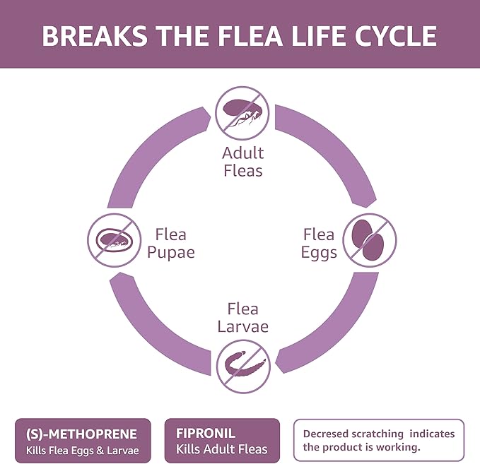 - INFESTATION CONTROL: Active ingredients in this dog flea medicine target eggs, larvae, adult fleas, as well as mosquitoes, lice, and flies
