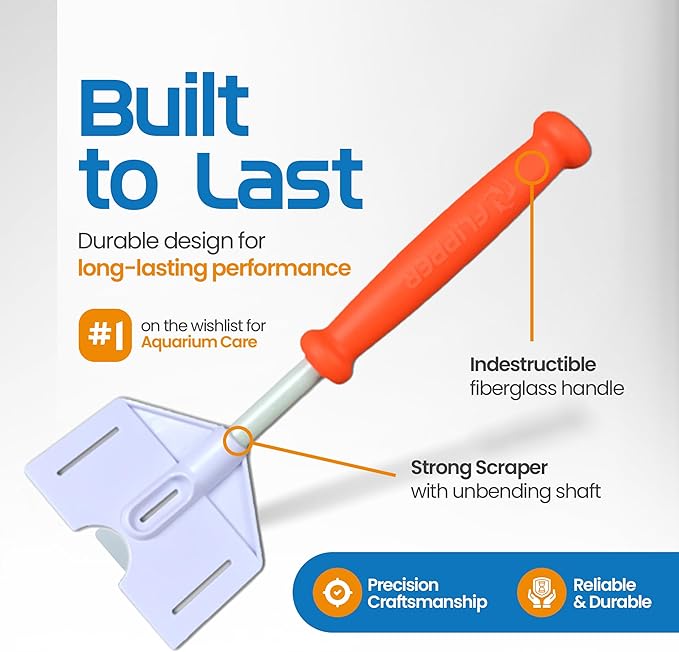 - Extended Reach: The long handle of this fish tank scraper helps you reach tough spots, making it an essential aquarium cleaning tool for deep maintenance.