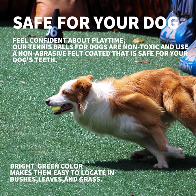 - Dog-Safe Material: Made from non-abrasive materials, these tennis balls are gentle on your dog’s teeth and gums. They are safe for exercise and training, preventing dental wear while still offering the durability needed for active play.