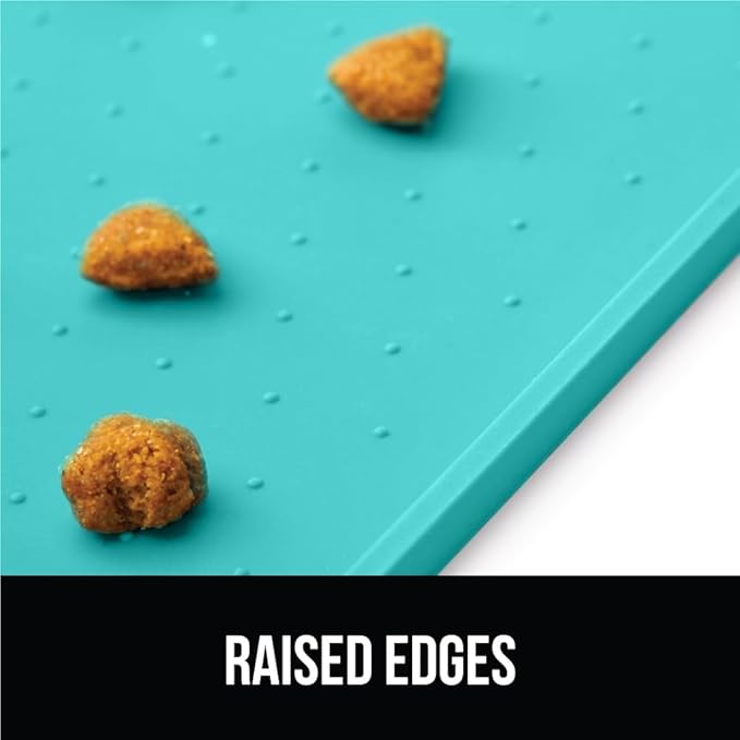GORILLA GRIP 100% Waterproof Raised Edge BPA Free Silicone Pet Feeding Mat, Dog Cat Food Mats Contain Spills Protects Floors, Placemats for Cats and Dogs Water Bowl, Pets Accessories 23x15 Turquoise
