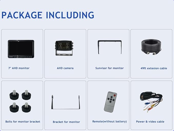 - [SINGLE VIEW MONITOR]A 7” LCD AHD 1080P color monitor (NOT SPLIT SCREEN, so the full/split/quad view buttons don't work) with U-type metal bracket. This monitor is not waterproof. It is compatible with most of the vehicles with a free power input range DC10-36V and supports with max 3 cameras. TVS device is built in to protect the monitor from being damaged by the transient high power of vehicles. And this monitor only supplies camera which is in use with DC12V, it saves energy.