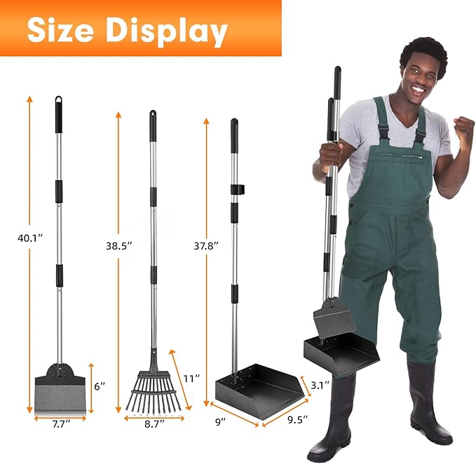 - ENVIRONMENT FRIENDLY CHOICE: LUFFWELL pooper scooper with tray rake and shovel designed with more capacity and solid structure for you and your pet, Owning a poop scooper set without countless plastic bags waste which are friendly to the environment, provides to you and your pet a better choices!