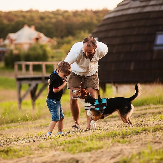 Dogline Dog Harness, Reflective No-Pull Adjustable Vest with Handle for Walking, Training, Breathable, No - Choke Harness for Small, Medium or Large Dogs Room for Patches Girth 27 to 34 in Turquoise