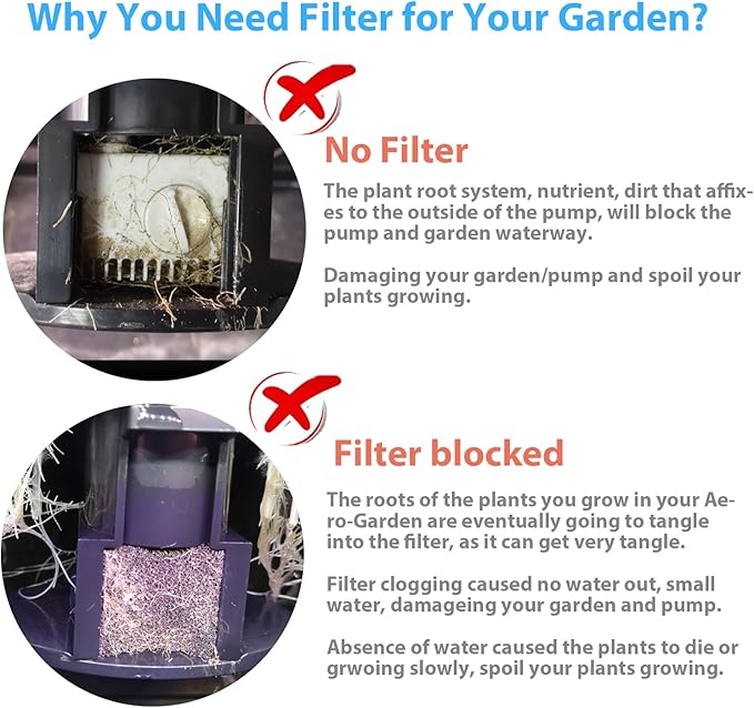 - Cost-Effective Price: Save much cost for your garden all the year round pump filter replacement need,We recommend changing your filter each time when you start to growing a new seed kit. Package contents 24pcs pump filter.