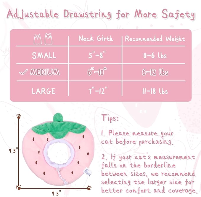 - 【AS AN ADORABLE PILLOW】 More than a cat recovery collar, it’s an adorable decoration for your lovely kitten. It also acts as a soft pillow when the cat lies down. Imagine your cat wearing it and looks like a strawberry, you both will be in a good mood all day.