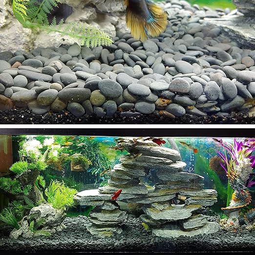 - 🐠【NATURAL STONES】These grey natural stones are non-toxic and eco-friendly river rocks. Their natural attribute will make them last longer because they will not deteriorate like mulch does.
