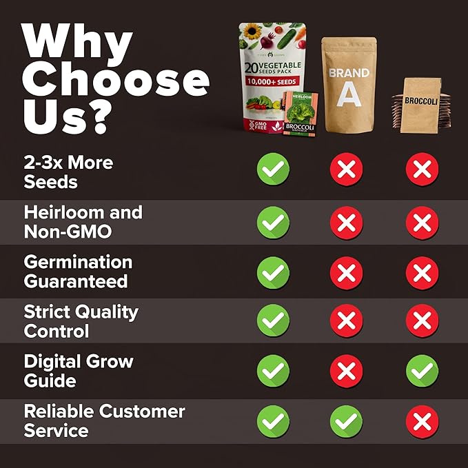 - HIGH GERMINATION RATES – GROWN AND PACKAGED IN THE USA. Every seed is sourced, tested, and packed in the USA to ensure quality and consistent germination. With a focus on dependable results, this pack is a reliable choice for families growing their own food or starting a backyard project. These seeds are compatible with a wide range of climates and offer steady performance from planting to harvest.