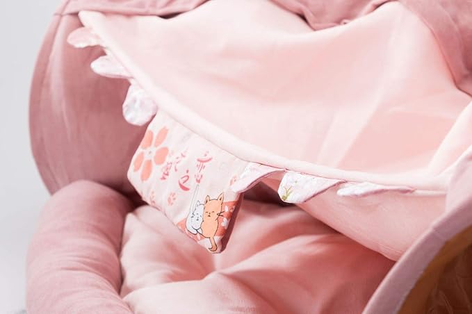 2 in 1 Cat Tunnel Bed Tube with Cushion and Plush Ball Toy Playground Crinkle Collapsible for Large Cats Kittens Kitty Puppy Small Dog Foldable Soft Pet Play Bed Indoor Outdoor- Pink Cat Tunnel Bed