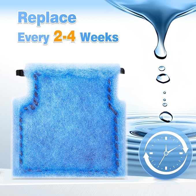 • 🐠🐠【Sincere Advice】: According to the test, the filter cotton has already withstood too much impurities for no more than four weeks, so you need to replace it with a new one. For optimum performance, replacement approximately every 2-4 weeks is recommended.