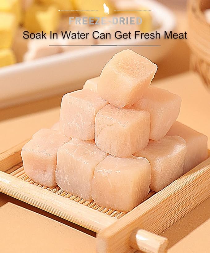 - FEEDING RECOMMENDATIONS – Protein Treats Can be Given Whole or Easily Crumbled as a Tasty Incentive at Mealtime. Moistening the Low-Calorie Treat Reactivates the Meat’S Aroma, Making This Reward a Great Way to Train Your Pets. 3 Feeding Recommendations :1. Feed Directly 2. Soak in Water, Get Fresh Meat 3. Mix with Pet Food