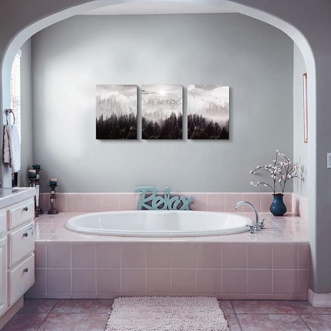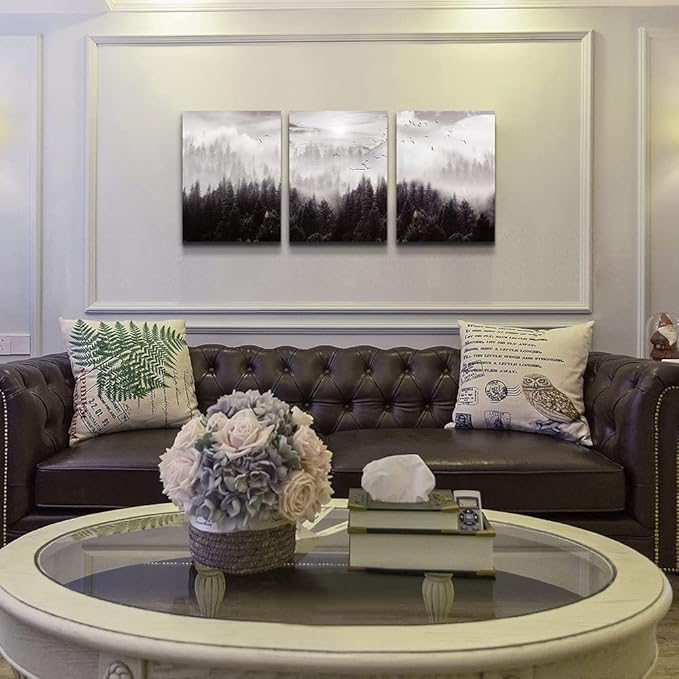 - WALL ART SIZE :Each Canvas Panel Is 12"X16"Inch (30cmx40cm), Total 3 Panels.3 Piece Set Foggy Forest Trees Scenery Wall Paintings Canvas Wall Art For Living Room Framed Wall Decor For Bedroom Room Wall Pictures Artwork Farmhouse Wall Decorations For Office Home Decoration