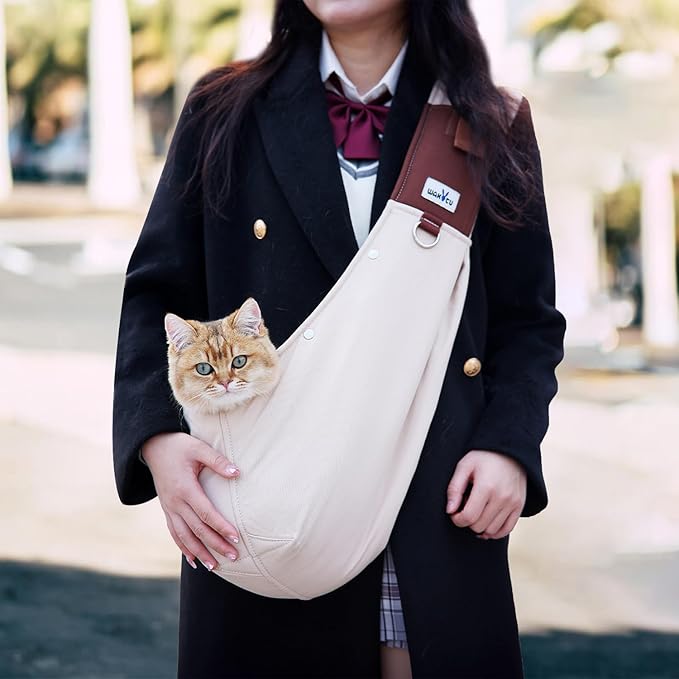 - 🐶 COMFORT & SAFETY:①Dog carrier sling has adjustable shoulder strap for various heights and weights;②Wide shoulder area for even weight distribution and reduced pressure;③Metal buckle with adjustable ventilation;④Pure cotton fabric for increased durability;⑤Breathable and comfortable fur lining;⑥Anti-escape buckle for safe travels.
