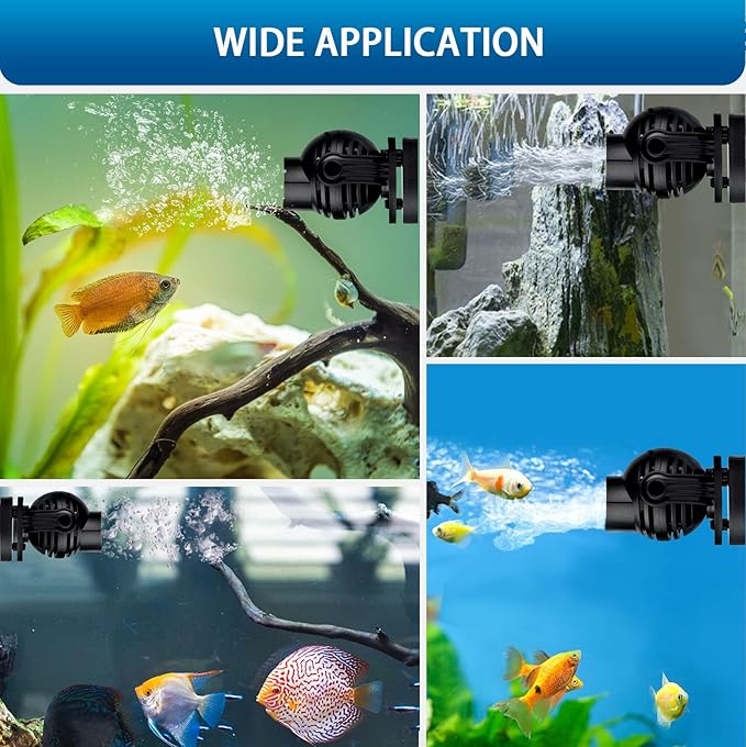 - 360°adjustable direction: The power head for aquarium rotates a full 360 degrees, offering full control of the direction of flow. Eliminate dead spots in your aquarium with the aquarium wavemaker. It doesn't take up much space in the tank with small profile