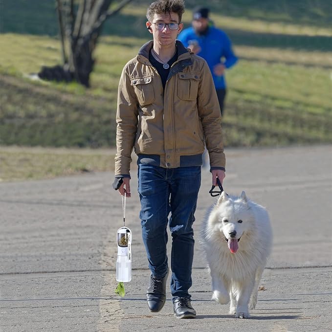 Dog Water Bottle with Food Container & Poop Bag Holder, Travel Water Bowl, Portable Pet Dispenser, Dog Stuff Accessories Items, Puppy Essentials Necessities for Yorkie Chihuahua Walking Hiking