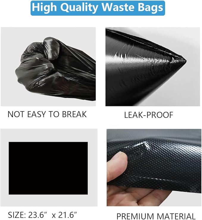 - 【50 Heavy Duty Waste Bags】The package comes with 50 poop bags for inner bucket. The large garbage bags(21.6in*23.6in) are two times thicker than standard grocery bags. You can fill this up and dump it on trash day. Saving you from the horrible stench of smaller poop bags being dumped in the trash and waiting all week for pick up.