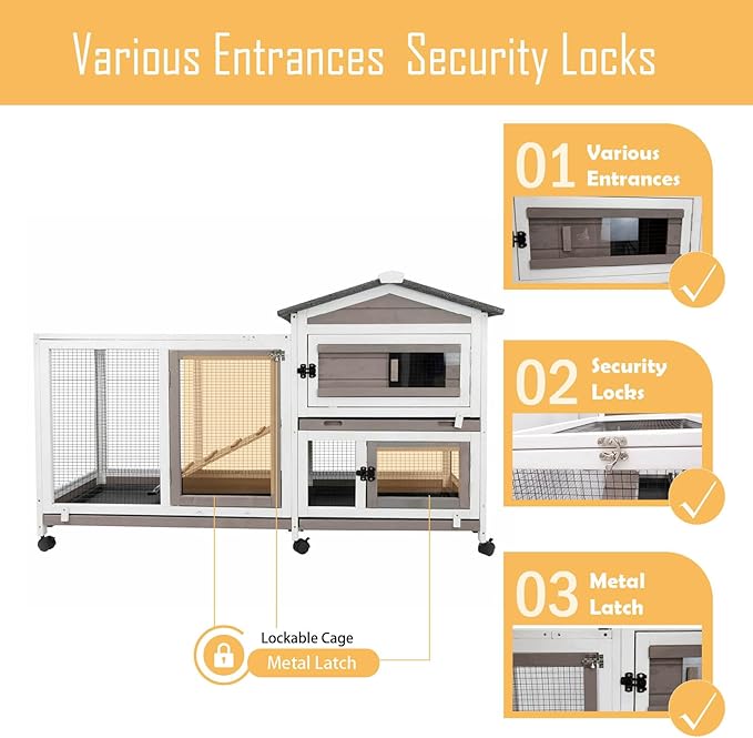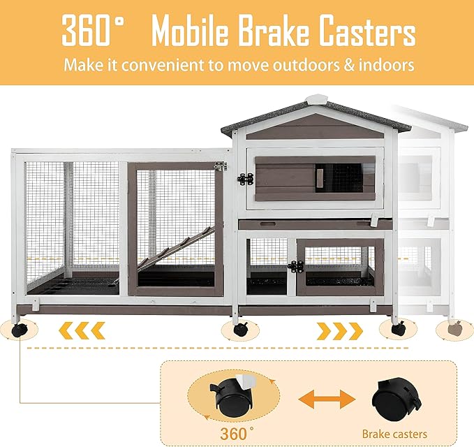 - 🐰【Home for Poultry】The bunny house is suitable for various small animals, such as rabbits, chickens, guinea pig and other small and medium animals. Clear functional structure for your poultry is perfect home which is can allow them play and live in freely.You can use it outdoors and indoors.