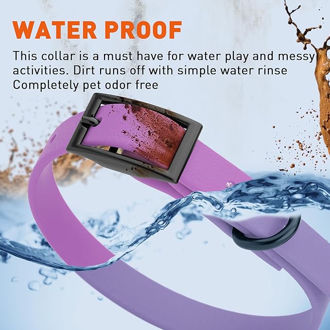 • Free Your Dog to romp in puddles and retrieve from lakes with the Dogline Biothane Waterproof Dog Collar. This water-repellent collar stays dry and odor-free, without shrinking or losing flexibility.