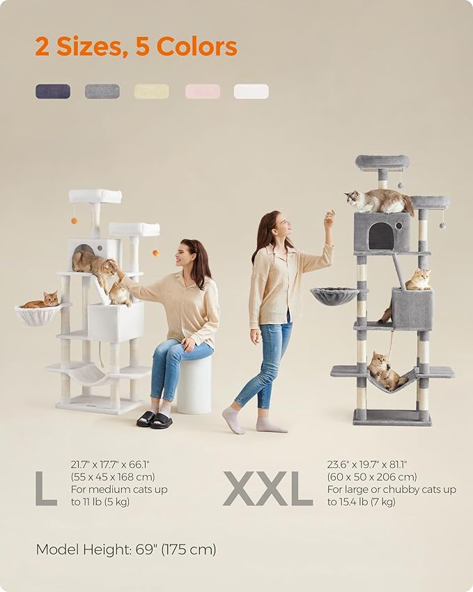 - [Easy to Assemble] With a simple structure, step-by-step instructions, and labeled parts, assembling this tall cat tree is as easy as building blocks