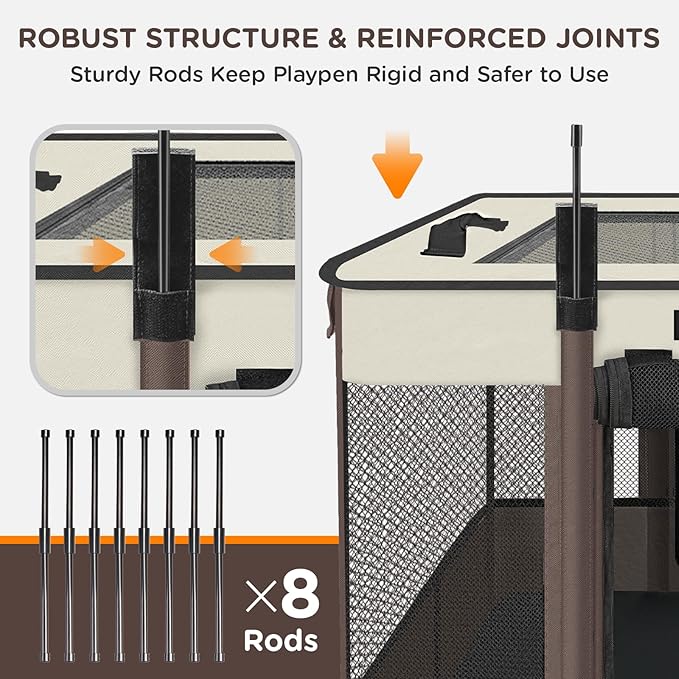 - Portable Design: Assembly can be completed in 3 minutes by unfolding the portable pet playpen and inserting the support rods. (You can check our video or user manual for specific installation and folding methods.)Portable dog cat playpen can be folded when not in use, suitable for indoor, outdoor, travel, camping, and more.
