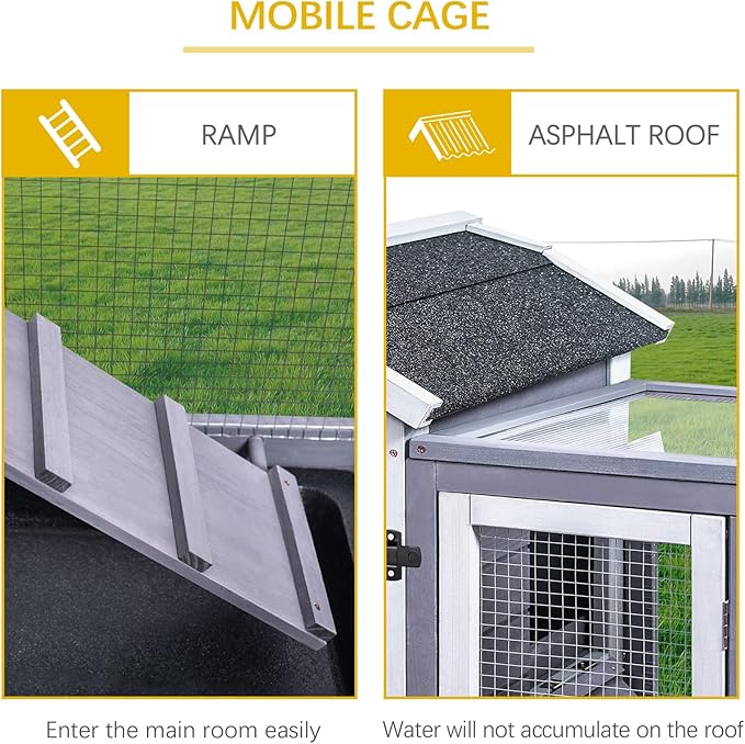 - 🐇【Safe & Weatherproof】- Crafted with environmentally friendly waterproof varnish and cedar wood, this hutch is built for your pet's safety and comfort. Its asphalt roof shields your small pets from wind, rain, and snow, making it suitable for both indoor and outdoor use.