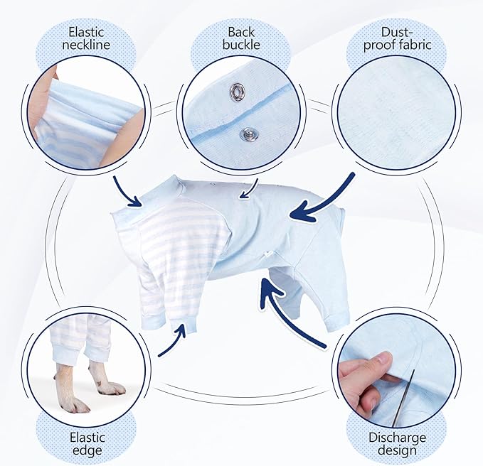 - Effective Help : This dog recovery suit can protect wounds , bandages, and skin problems when your pet is spayed or neutered. These Pet surgical bodysuit onesie are suitable for Medium or Large Dogs.