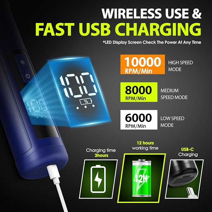 - 【3 Speed Switch & Grinding Ports】: IREDOON dog nail trimmer boasts a 3-speed switch and 3 grinding ports, which allows pet owners to adjust the speed and grinding settings based on their pet's size and nail hardness.