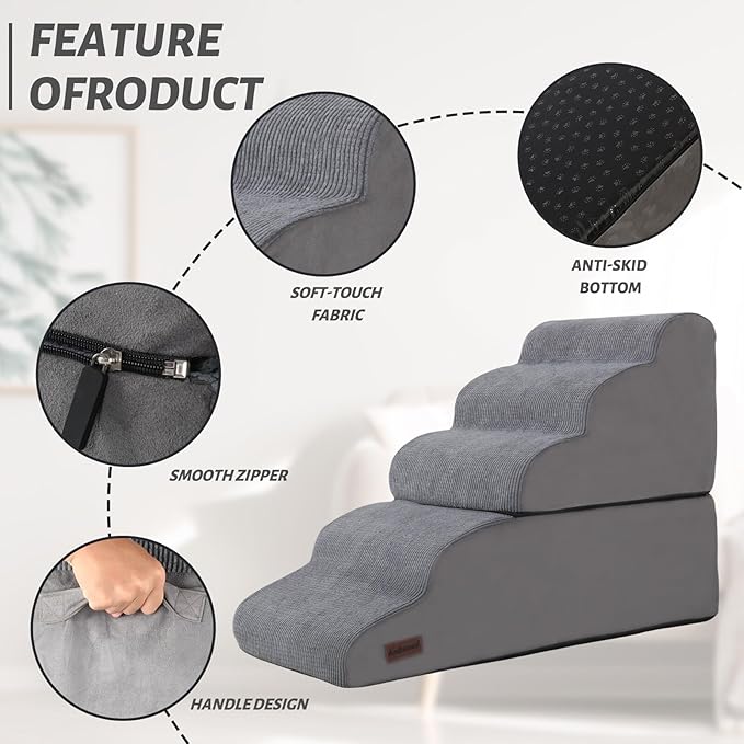 - THOUGHTFUL DESIGN: There is a handle on the back of the dog steps to help you more conveniently during the transfer process. The dog step has a removable washable cover that can be hand or machine washed, so you don't need to spend a lot of time cleaning it