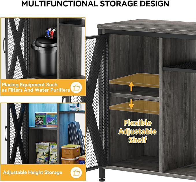 - Sturdy & reliable construction: Made of thickened table legs, our fish tank table supports up to 660 lbs. The included anti-tip devices help avoid tip-over accidents. The moisture material ensures durability