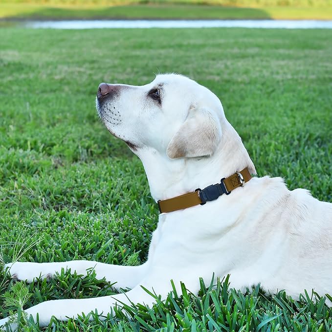 Dogline Biothane Waterproof Dog Collar with Herm Sprenger Stainless Steel Quick Release Buckle – Heavy Duty Tactical Durable Collar for Dogs – Comfortable and Safe Pet Collar, W 3/4" L 12-19", Brown