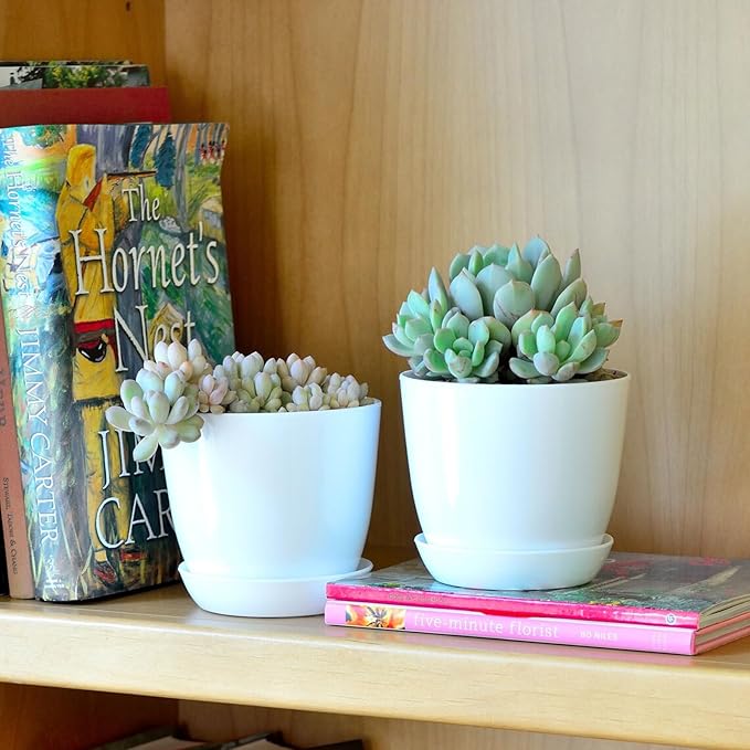 - Comes with Drain Hole and Tray:Bottom drain holes to keep soil drained and ventilated, the matched saucers to prevent mess floor.