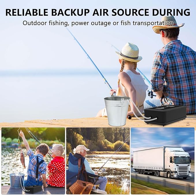 - Long-lasting Battery Life: Equipped with a high-capacity lithium battery, fish tank aerator features a built-in 6600mAh battery that can support continuous operation for up to 45 hours, providing a reliable oxygen supply for your fish tank. the aquarium pumps also incorporates overload protection for added safety, It is an excellent choice for fishing and emergency pumping