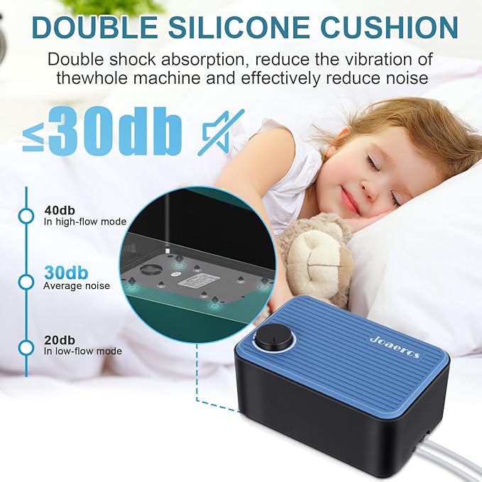 - Fish tank air bubbler triple sound Insulation: fully enclosed structrue, double silicone cushion, reduce the vibration amplitude, isolation noise