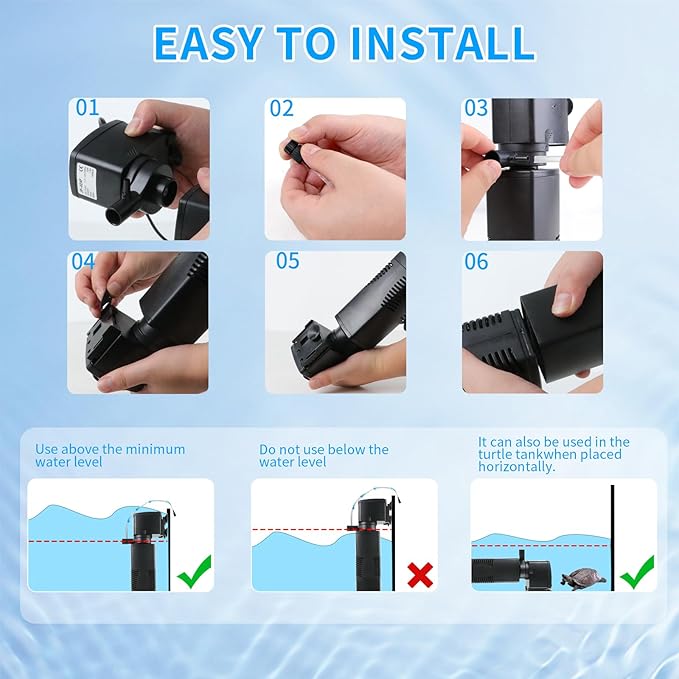 - Powerful Pump: 300 GPH water pump effectively filters 55-150 gallons; ideal for large aquariums, turtle tanks, and ponds.