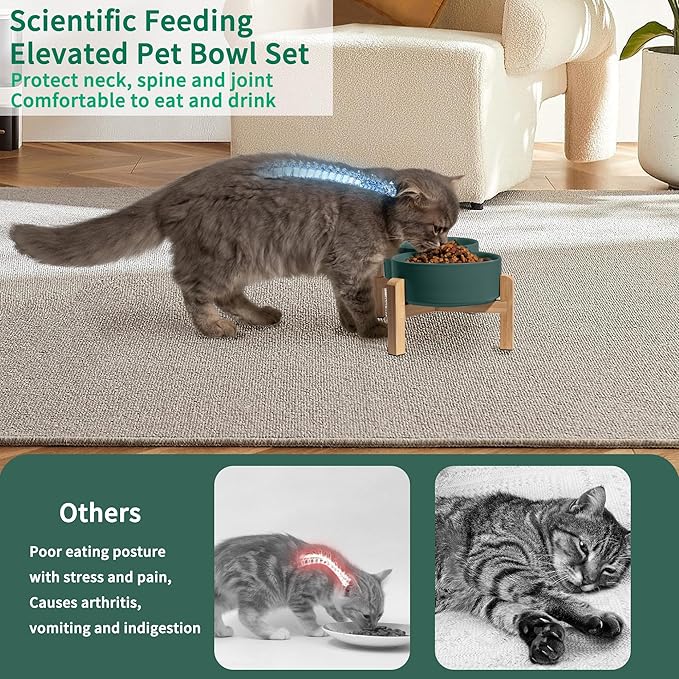 - Anti-Slip and Anti-Tipping: Each leg of the bamboo stand is equipped with rubber pad stickers to prevent the bowls from sliding when pets eat. And the thick ceramic dog dish bowl is heavy enough and stable enough, not easy to pushed down by naughty pets.