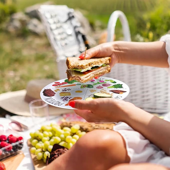 - HIGH QUALITY: Our diabetic portion plate for adults is made of durable melamine with clear, bright printing. Lightweight and sturdy, it is resistant to breaking and fading, safe for reuse, and dishwasher safe, ensuring long-term use.