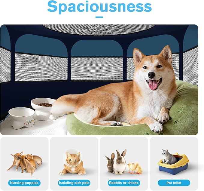- Bonus Included : The dog playpen indoor comes with a carry bag and a collapsible 16 oz.pet bowl.Ideal for Travel