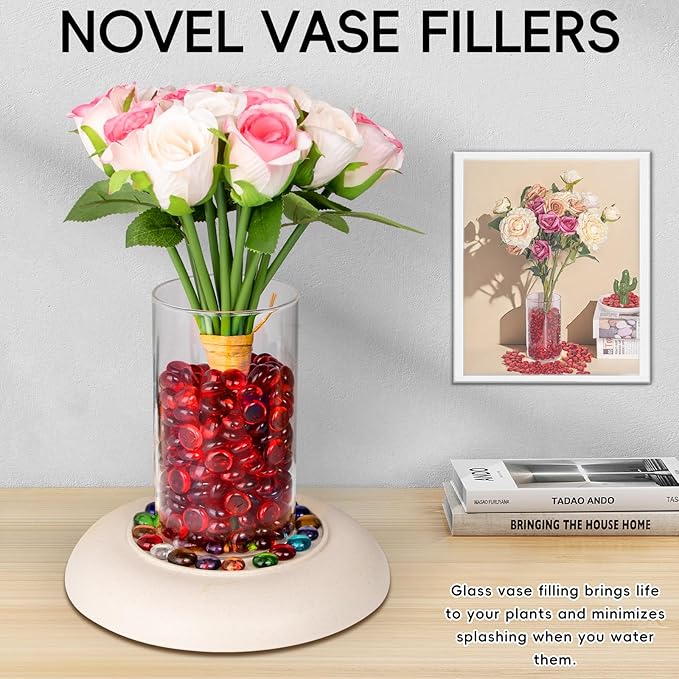 - 【Widely Applied】These flat marbles can serve as vase fillers for centerpieces,decorative accents for pool or landscape bottoms, home décor, photography backdrops, gardens, weddings and parties, fire pit glass rocks, as well as glass beads for crafts.