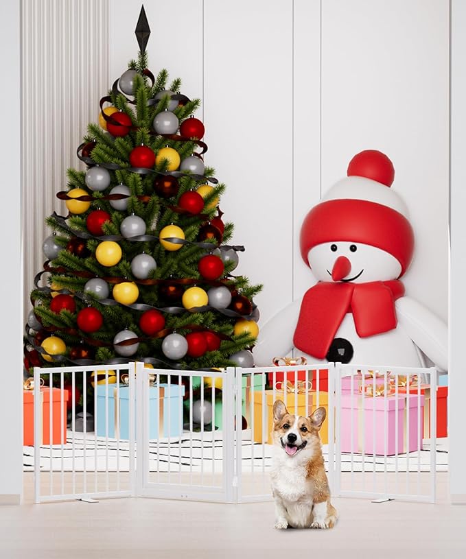 - [Versatile Sizes]: Our pet dog gate is available in 24-inch and 32-inch heights, perfect for puppies, small and medium dogs pets. Multi-choice of 2 panles, 4 panles and 6 panles, suitable for stairs, kitchens, bedroom doors, corridors and other indoor and outdoor forbidden areas.