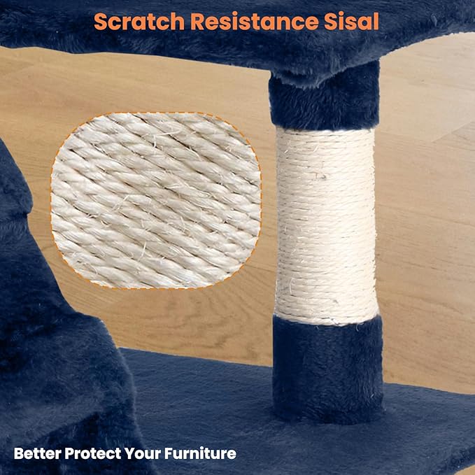 54.7 inches Cat Tower - Multi-Level Cat Condo with Scratching Posts, Hanging Toys, Navy Blue