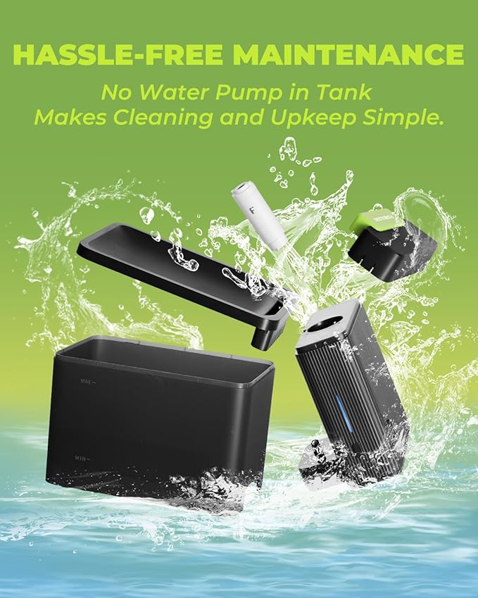 - EASY INSTALL AND CLEAN: Separate water tank design eliminates the need to clean a water pump, and the IPX-6 waterproof electronic dock ensures safety