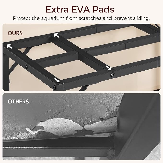 - Sturdy Build: The 20 gallon fish tank is made of heavy-duty metal, with a top cross-frame for stability and corner triangles for extra strength. The top covered with EVA pads keeps your aquarium from slipping, making it a reliable choice to support your tank