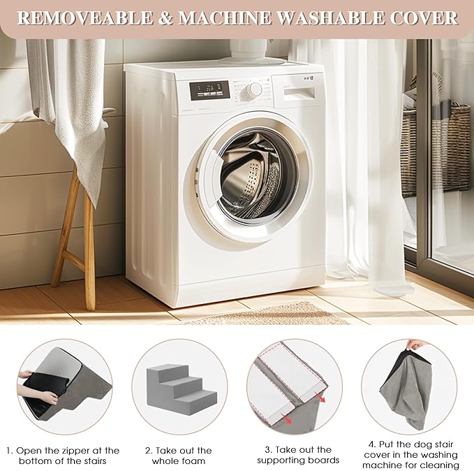 - 【ENHANCED STABILITY】GGIB dog stairs improve a new design with supporting boards, added between the foam stairs and the removable cover. They are fixed inside the cover. Pets can step on more stable and supportive stairs surface, preventing them from slipping when moving quickly.