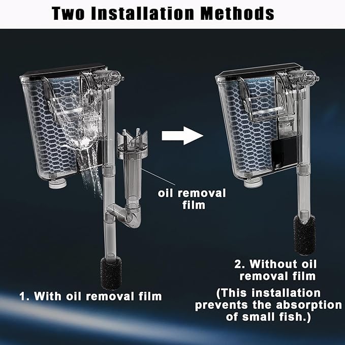 - 🐠The Parameter of the Filter: AC110V/60Hz, 2.5W, 250L/H, the flow is adjustable. The filter is hanging back, which allows for more room in the tank. ⚠️Remember, fill the filter with water before every start-up!