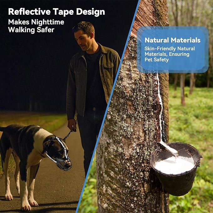 - Eco-Friendly Material for Safety and Durability: Our Dog Muzzle for Large Dogs is Crafted from Non-toxic, Environmentally Friendly TPR Silicone. This Lightweight yet Durable Material Is Odorless, Soft to the Touch, And Sturdy Enough to Resist Deformation, Ensuring Long-Lasting Use While Prioritizing Your Pet’s Safety