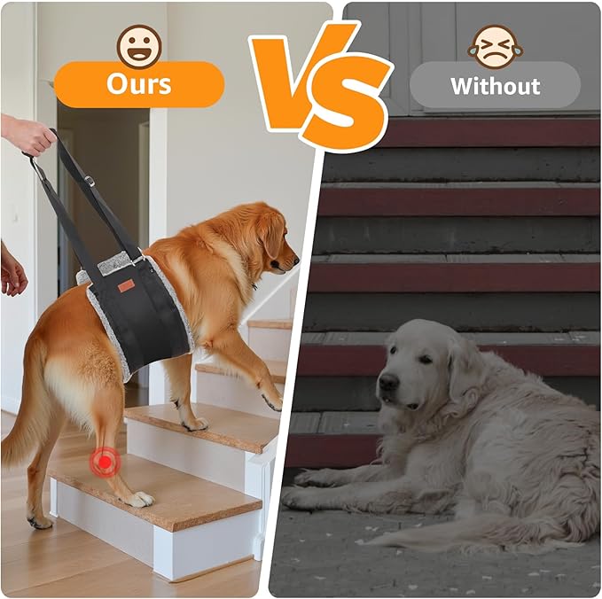 - Lifesaver: The dog carrying harness can pick up the rear end of your fur friend,prevent hip pain and injury caused by aging, support them getting in and out of the car,up and down the steps,help them get up from lying down,stabilize both the gait and spine