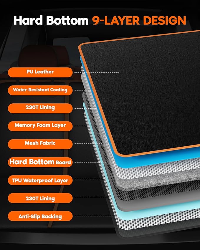 - 【Anti-Slip and Stability Features】Designed with seat anchors, a non-slip backing, and grip dots, this cover stays securely in place, even in SUVs, trucks, or cars. The included door protection panels guard your car doors from scratches, while the stable design is also ideal for kids or child car carriers, making it a versatile accessory for your vehicle interior