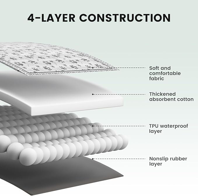 - Thick & Durable-Materials:Thicker and more absorbent, saving the time you need to replace pads. The back of them does not easily get saturated. The durable waterproof layer reduces liquid from leaking to the floor/carpet. Comfortable and no tracking. Keep your home clean.