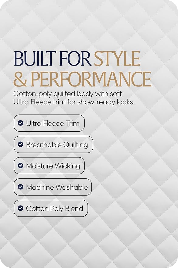 • ✅ Durable and Comfortable Design – The quilted poly cotton body ensures long-lasting durability and breathability, providing your horse with the ultimate comfort for hours of riding, whether you’re in the show ring or out for training.